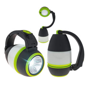 The camping lantern is designed to be used in various ways to meet your different needs. It can be used as a compact handheld flashlight or a desk lamp, or sat on a flat surface for use as a more traditional camping lantern.